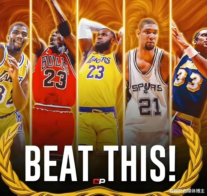 一阵中控球后卫:魔术师约翰逊:5冠+3FMVP+3MVP,湖人“Showtime”王朝的灵魂人物,唯一能在总决赛打满五个位置的球员;得分后卫:乔丹:6冠+6FMVP+5MVP,历史唯一包揽得分王与最佳防守球员(DPOY)的后卫,季后赛场均33.4分断层领先,6进总决赛全胜的完美履历无人能及。小前锋:詹姆斯:4冠+4FMVP+4MVP,19次入选最佳阵容(13次一阵)的历史纪录保持者,唯一达成“5万分+1万篮板+1万助攻”的球员;大前锋:蒂姆·邓肯:5冠+3FMVP+2MVP,马刺王朝的基石,15次入选最佳阵容与15次最佳防守阵容的双重成就,彰显其攻防一体的稳定性。中锋:贾巴尔:6冠+2FMVP+6MVP,历史总得分王(38387分),“天勾”绝技无解,38岁仍能斩获FMVP。